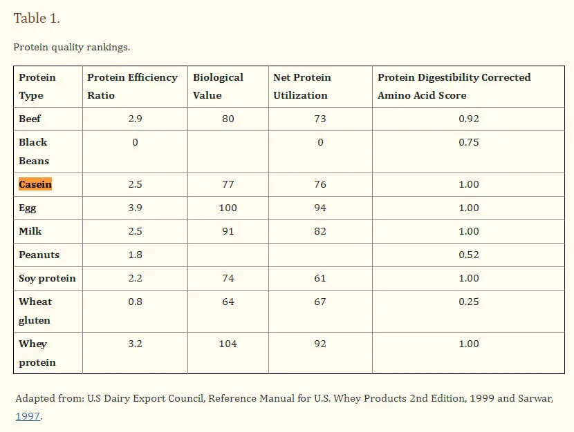 In uno studio del 2005, pubblicato sul Journal of Nutrition, i ricercatori confrontando soia e caseina, hanno concluso che “il valore biologico delle proteine della soia, deve essere considerato inferiore a quello delle proteine della caseina per gli esseri umani“. Tra gli altri svantaggi, i ricercatori hanno trovato una porzione significativamente più grande di soia degradata come prodotto di scarto nel ciclo dell’urea, il che contribuisce ad avere meno sintesi proteica nel corpo.